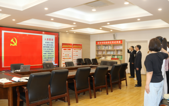 最后,全体毕业生党员共同在党旗下庄严地举起右手,重温入党誓词。