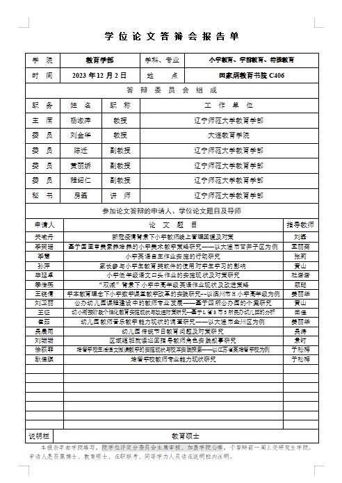 2023年下半年硕士学位论文答辩会报告单公示