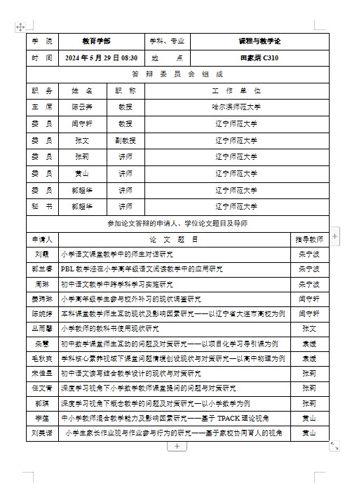 2024年学位论文答辩会报告单公示(二)