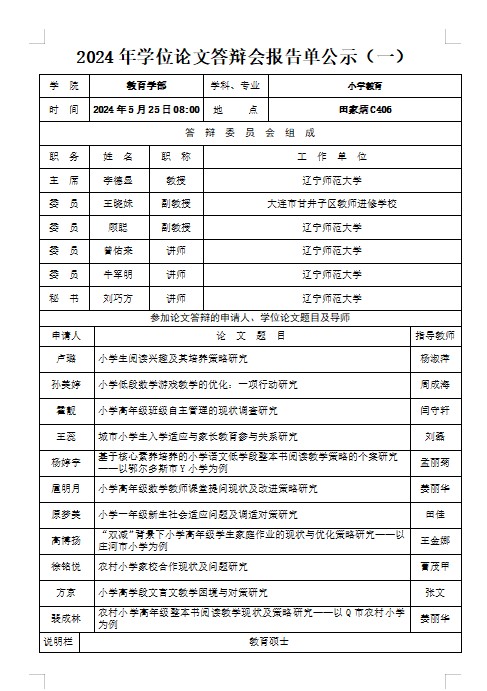 2024年学位论文答辩会报告单公示(一)