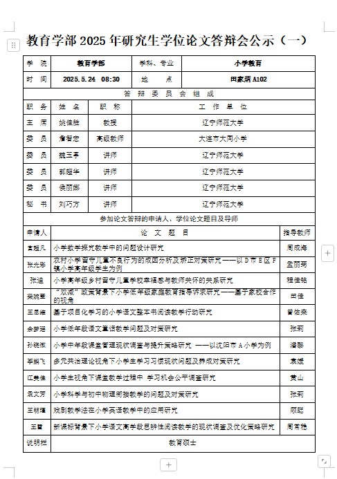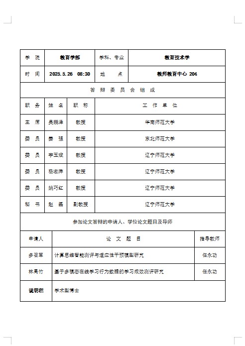 华人博彩策略论坛 2025年研究生学位论文答辩会公示(二)