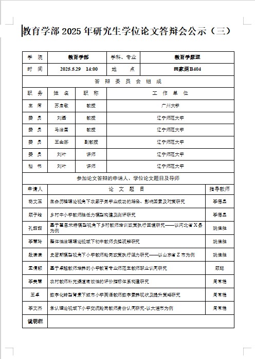 华人博彩策略论坛 2025年研究生学位论文答辩会公示(三)